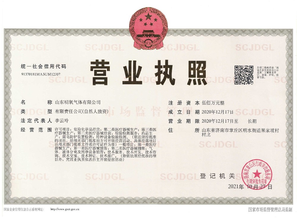 ??? 山東明氧氣體有限公司的前身為始建于1993年的章丘市明水氧氣廠,2020年12月企業(yè)由民營(yíng)獨(dú)資轉(zhuǎn)型升級(jí)為山東明氧氣體有限公司,企業(yè)進(jìn)入新的發(fā)展階段。公司位于山東省濟(jì)南市章丘區(qū)明水街道杲家坡村村北,占地面積4000平方米,注冊(cè)資金500萬(wàn)元,固定資產(chǎn)投資3000萬(wàn)元,主要經(jīng)營(yíng)項(xiàng)目為醫(yī)用氧氣、工業(yè)氧氣、氮?dú)?、高純氮?dú)?、氬氣、高純氬氣、高純氦氣、二氧化碳、混合氣體等各種工業(yè)氣體、高純氣體、混合氣體的充裝銷售、各類氣瓶的銷售、安全閥校驗(yàn)、鋼質(zhì)無(wú)縫氣瓶的檢驗(yàn)等。